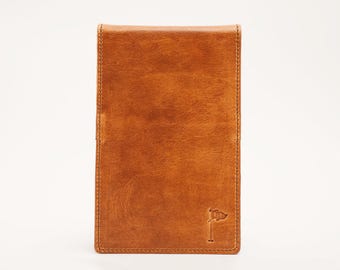Handmade Gentleman's edition Golf Scorecard Holder. This piece is made from a Genuine, Full Grain, Vintage tanned leather in Bourbon.