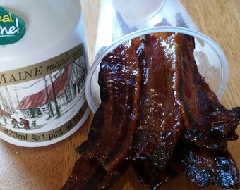 I received the candied bacon in a basic plastic container with maybe ¼ lb of bacon (and that’s a generous estimate). It is not as pictured, where I expected heavy maple glaze and a candied crust to preserve the bacon. Instead I received softer pieces with lots of brown sugar crumbles. Looking at it, I’m not sure how long it’s suppose to keep. If I had known this was the result after spending $19.95 plus $7.75 in shipping, then I would have followed a recipe and made my own. I feel so foolish. The only reason I bought this was because I was expecting that candied, crunchy glaze that would preserve the bacon since I am shipping this with other items as a gift. See my profile picture of what I received (can’t upload photos here?). Update: the seller notified me and said it should be refrigerated and will keep for up to a week.