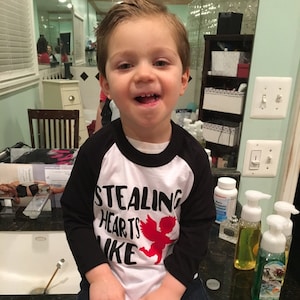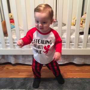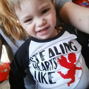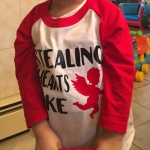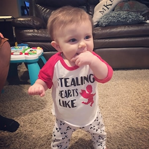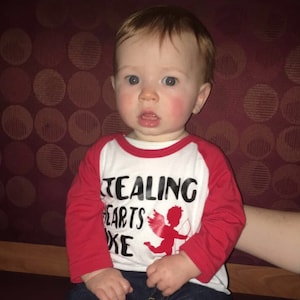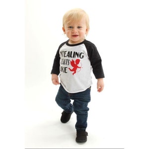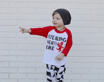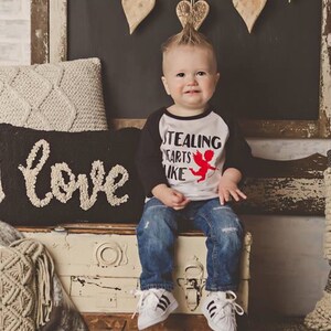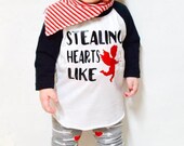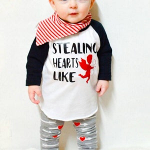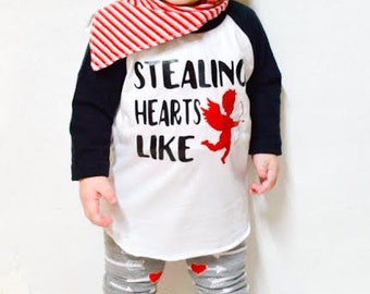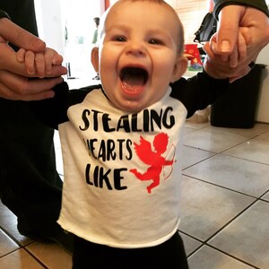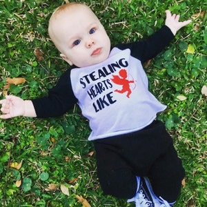 baby boy valentines day shirt, stealing hearts like cupid, first Valentines day outfit, valentines baby, v-day raglan, boy baseball tee