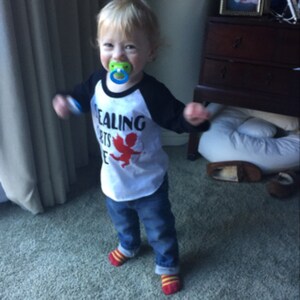 This stealing hearts like cupid raglan is one of our best sellers and it's super cute and trendy so it works for all ages, not just babies!