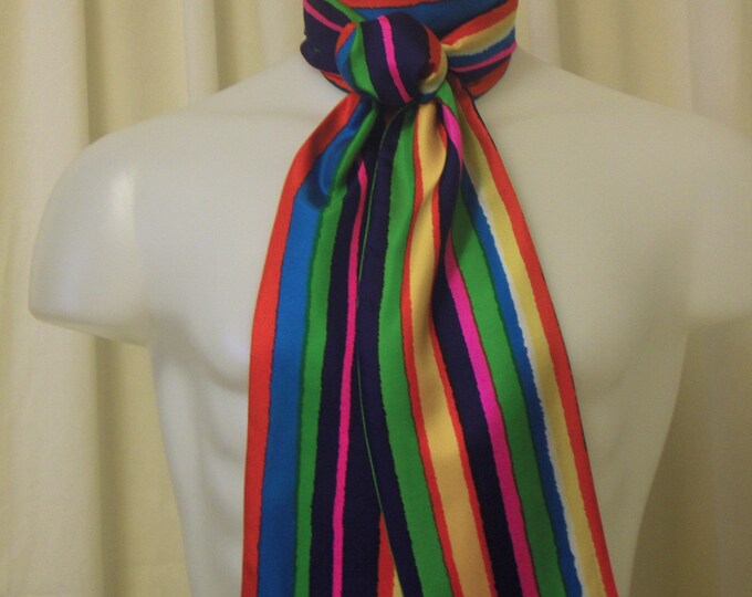 Long Ascot, Jabot, Cravat, Necktie in Bright Stripe Silk Fabric, Square Ends for Victorian, Fantasy Costume, Wedding Attire