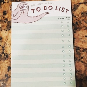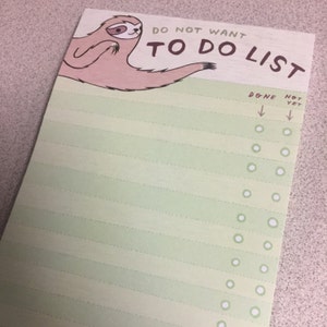Sloth TO DO LIST notepad -- funny gifts -- sloth gifts - Do not want to do list note pad - sloth notepad - funny notepad Funny coworker gift