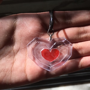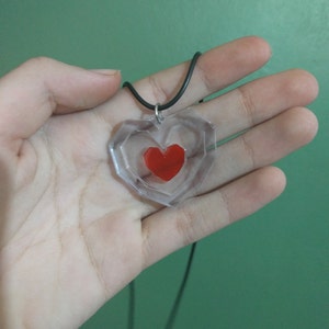 This is a really faithful recreation of the OoT heart piece, I thought it was cool the designer of the pendant gave the option to have the translucent boarder blue or clear. I switch out this with the seller's rupee necklace about once a week, I love them~