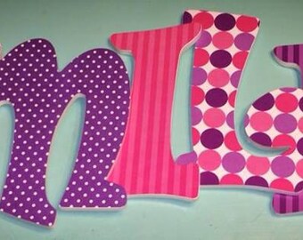 Custom Decorated Wooden Letters - Pink and Purple