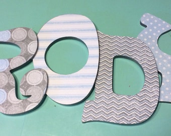 Custom Decorated Wooden Letters - Blue and Gray