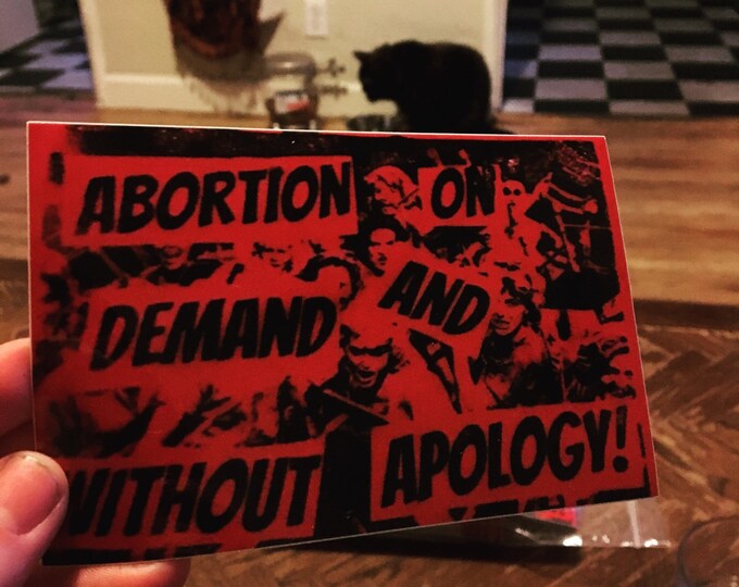 Prochoice "abortion on demand and without apology" feminist bumper sticker 5"x3" 20% of sales go to national network of abortion funds