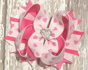 The Love Bird Valentine's Hair Clip- Red Hearts, White Felt Birdie- Valentine Accessory for Girls
