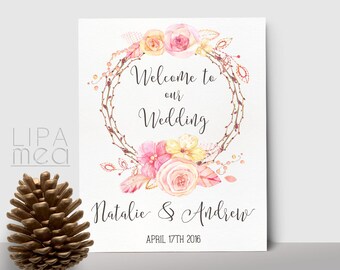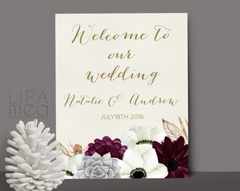 Printable Welcome Sign, Floral Wedding Welcome Sign, Floral Welcome Sign, Shower Welcome Sign, Boho Welcome Sign succulent