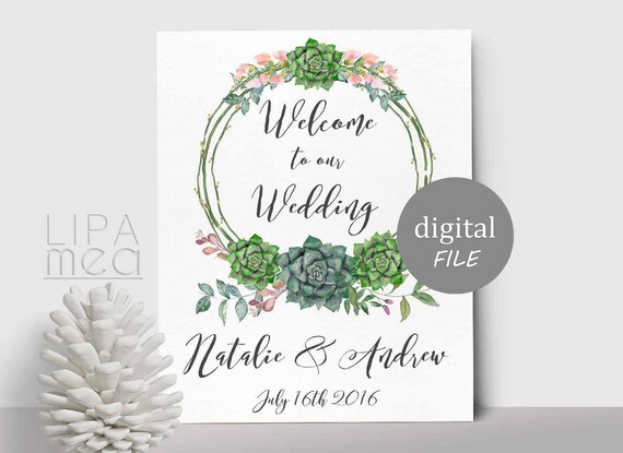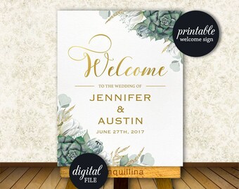 Printable Welcome Sign, Wedding Welcome Sign, Floral Welcome Sign, Succulent Welcome Poster, Shower Welcome Sign, Boho Welcome Sign -
