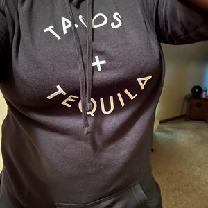The seller is super cool and did my special request of Tacos + Tequila on the long hoodie. The hoodies are my absolute fave-I have purchased 3 of them so far and will most definitely buy more. Love this shop!🖤