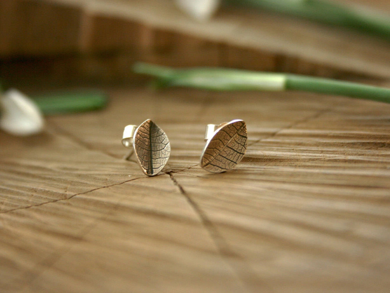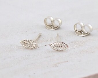 Tiny Silver Leaf Stud Earrings: Leaf Earrings, Sterling Silver Studs, Jewellery, Rustic, Nature, Woodland Earrings, Everyday earrings,