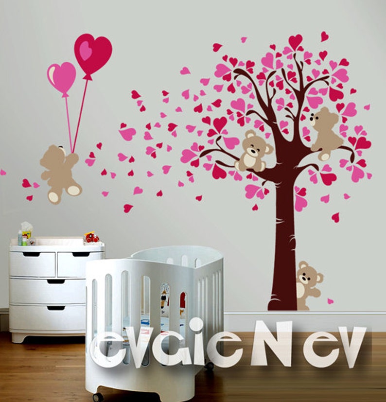 Wall Decals for Girl - Teddy Bears LOVE Wall Decals - Hearts Baby Nursery - Valentine Wall Stickers -PLTBRS020