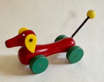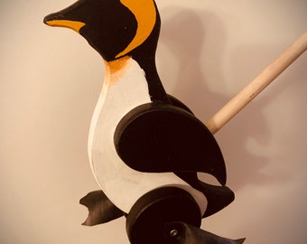 Quail With a Heart on Wheels - Folk Art Push Toy