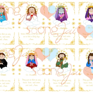 Check out our other listings for more adorable saint holy cards! Our newest sets are Marian Holy Cards: https://www.etsy.com/listing/1068221936/ and Jesus Holy Cards: https://www.etsy.com/listing/1068619226/