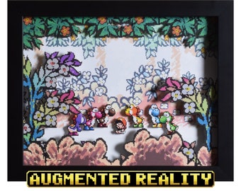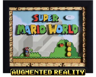 Super Mario World Augmented Reality Shadowbox - Yoshi's House - SNES - Super Nintendo - 3D Shadow Box Acrylic Frame - 12x10 - Birthday Gift