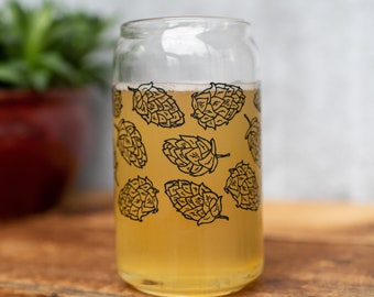 Hops design - set of TWO pint glasses beer lover brewer gift for him