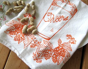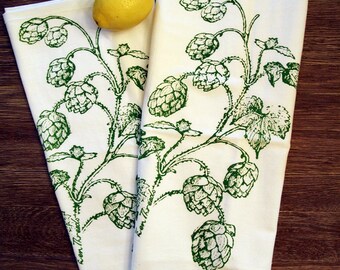 Tea Towel Kitchen towel with Hops screen print brewer beer lover -