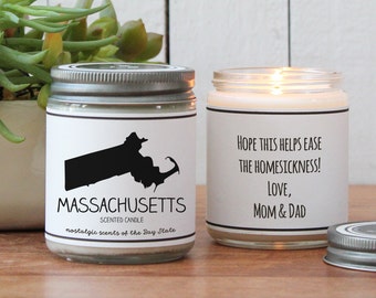 Massachusetts Scented Candle - Homesick Gift | Miss Home Gift | State Scented Candle | Moving Gift | College Student Gift | State Candles