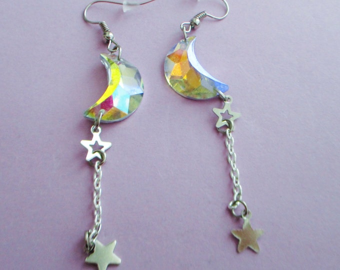 moon and star earrings - kawaii earrings - kawaii jewelry - pastel goth - fairy kei - moon earrings