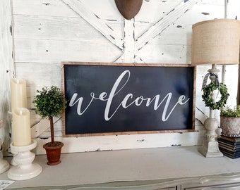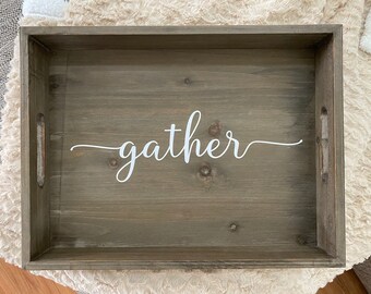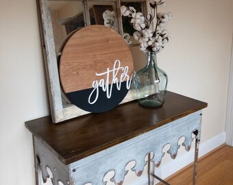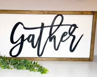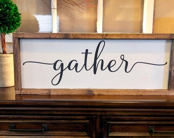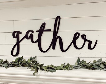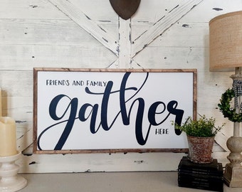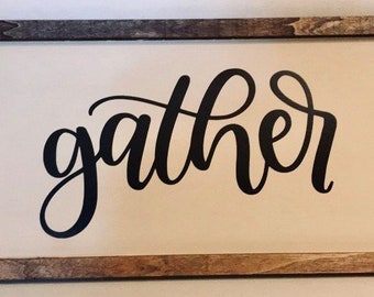 GATHER sign / Large Wall Art / Kitchen Decor / Fixer Upper Style / Wood Sign / Family Room Sign / Handpainted / Farmhouse / Chalkboard Style