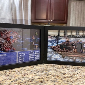 This scene is printed on crystal-clear, optically pure digital acrylic and layered to create a three-dimensional image that brings each scene to life. Each scene is protected by a 12x10" contemporary black picture frame with a viewport matching the aspect ratio of the original screenshot. Mounting hardware is included. The perfect gift for gamers and the perfect decoration for game rooms!