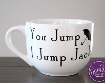 You Jump I Jump Jack - Large 16 oz Black or White coffee mug - Inspired by Gilmore Girls - with Umbrella - Rory and Logan - Cappuccino - Tea