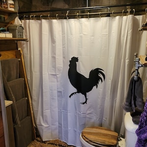 I love the shower curtain. I love I could put a rooster on it. Great quality and because it's custom made I have enough material to cover my custom made walk in shower. I was using two shower curtains. Thank you