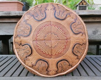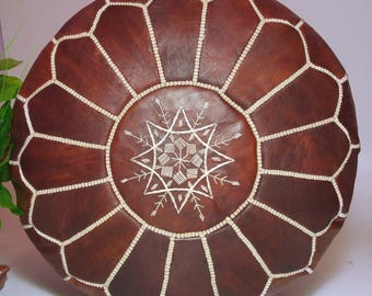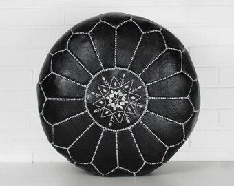 Leather Footstool | Quilted Leather Pouf in in black and fuchsia | Leather Ottoman | Pouffe | Handmade Footstool | Housewarming Gift