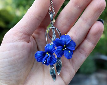 See moreFloral jewelry from polymer clay and 925 silver metal - Polymer clay Blue flowers earrings - Bridal jewelry