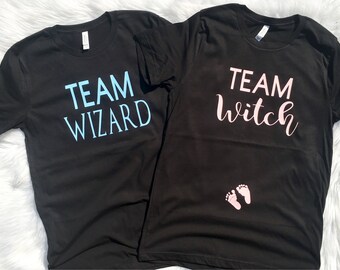 Team Witch and Team Wizard Shirts, Witch Shirt, Gender reveal Party, Baby shower, Couples pregnancy Announcement shirts, Preggers Shirt,