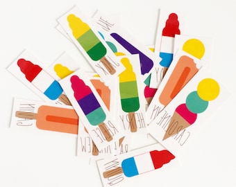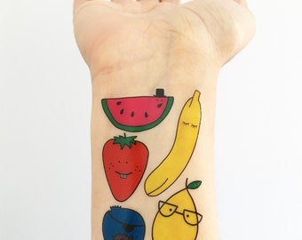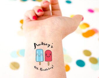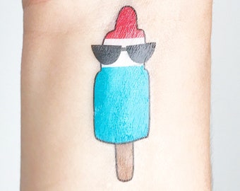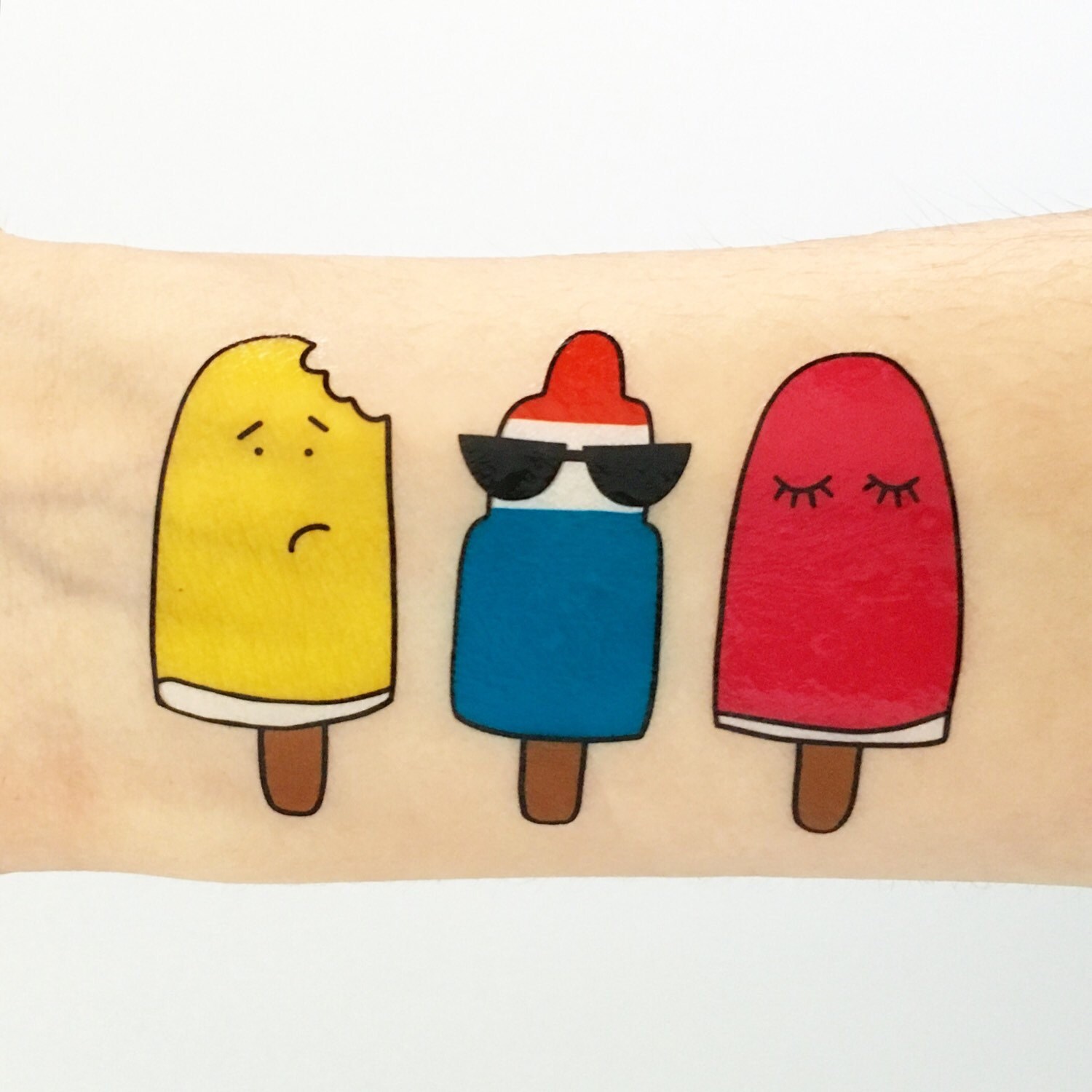 3 popsicle pals, each with their own personality. Cut them apart and wear separately, or have a tasty little party on your arm! Each sheet comes with the THREE tattoos pictured here. You'll get 2 sheets.