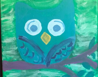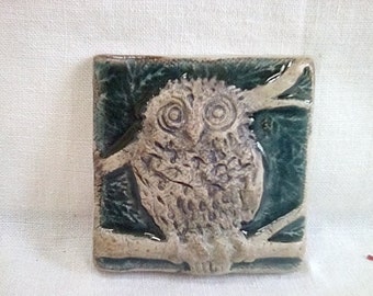 Brown Owl on Branch on Turquoise Blue Tissue Cozy
