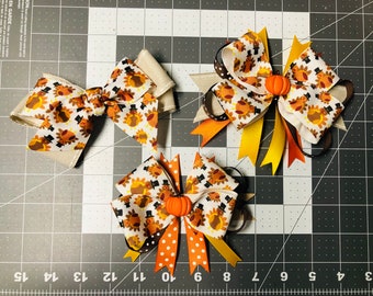 LiliBug Fall Turkey 3-in-1 Woven Headband and HairBow Set