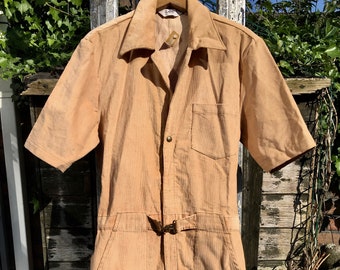 NWT Vtg 1970s LEE Brown Poly Cotton Short Sleeve Corduroy JUMPSUIT Deadstock Retro Playsuit L32 Small