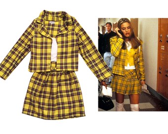 SALE Cher's Clueless Outfit Yellow Tartan Plaid Fancy Dress Adult Costume skate skirt woman costume halloween
