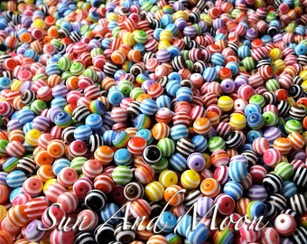 100 8mm Striped Beads, Rainbow Striped Gumball Beads, Bubble Gum Beads, Colorful Beads, 8mm Beads, 8mm Gumball Beads, Round Resin Beads