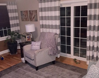 Storm Gray White Modern Horizontal Stripe Cabana Curtains - Grommet - 84 96 108 or 120 Long by 24 or 50 Wide Optional Blackout Lining