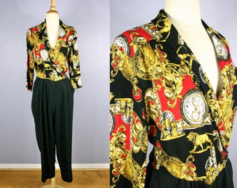Vintage 80s Jumpsuit 1990s Jumpsuit Hip Hop Jumpsuit Retro Playsuit HIPSTER Pantsuit SWAG Soft Grunge Black Jumpsuit Gold Clock Lion Red