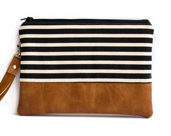 Black and White Striped Clutch Purse, iPhone 7 Wristlet Wallet, Faux Leather Fanny Pack