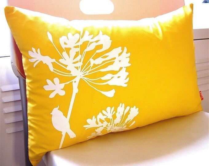 Yellow Cardinal on Agapanthus Rectangle Pillow