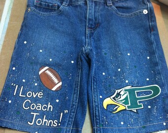 Valentine Heart Applique Ruffle Jeans Custom size Newborn to girls 6 SewSoNancy Boutique