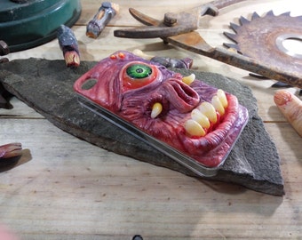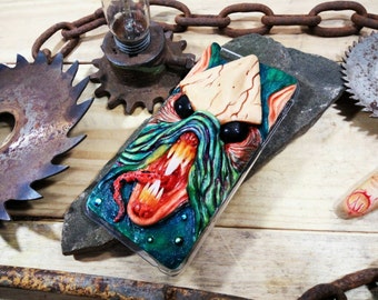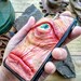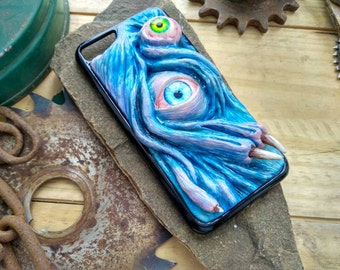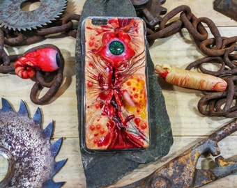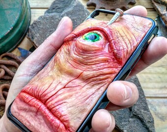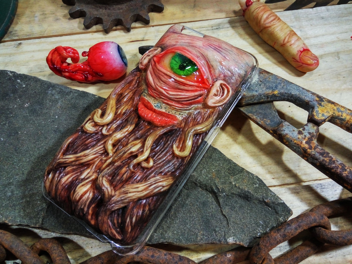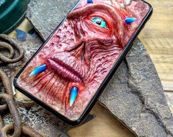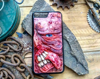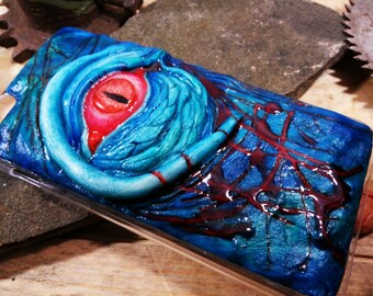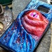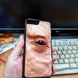 Case Was neatly packaged in a box to secure from damage in transit. Case Completely padded inside of box to prevent from being banged around and kept secure in place. Overall case looks good. Purple blood could have been brighter, but through a lack of good communication, it’s still fairly acceptable. The eye might have been glossed too heavily creating a “cloudiness” or blurriness on part of the iris. Fleshy pink part has slight bleeding from the purple blood, causing dye spots. Texture and detailing is amazing and lifelike. Blood drip between the fleshy pink skin and blue has a slight hole from where the blood didn’t settle in. Case Snaps onto phone easily and effortlessly. Artist was reasonable and patient with me for the most part on a custom order, but language barrier prevent creating exactly what I had envisioned. 7/10
