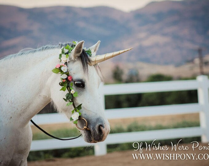 Metallic Gold Classic Unicorn Horn Costume for Horse, Pony or Mini by WishPony Original Makers of the Child-Safe Unicorn Horn MADE TO ORDER