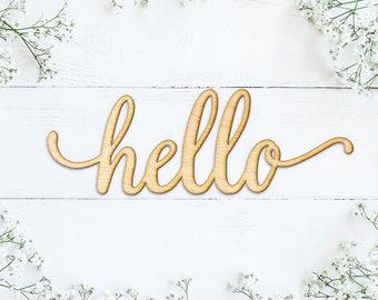Hello Script Wood Sign -Wood Sign Art, Wooden Hello, Hello Sign, Laser Cut Wood Sign, Wood Wedding Decor, Cursive Hello, Greeting Sign