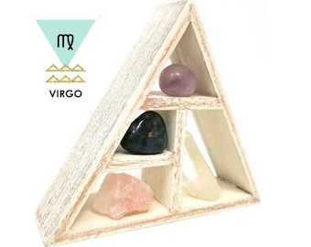 VIRGO Zodiac Crystal Set / Astrology Stones and Wooden Geometric triangle shelf in Gift Box / Virgo Birth Stone Gift ~ 25