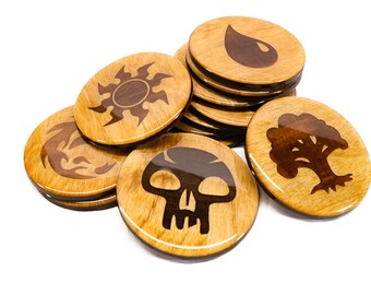 Magic The Gathering Coasters - MTG Mana 3.5" Laser Engraved Wooden Coaster Premium Geeky Birthday Nerdy Valentines Gift Set Dice Box Token