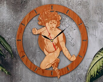 Wonder Woman Wooden clock Vintage watch Farmhouse wall decor Clock Gift for her Girlfriend gift Alarm clock Cuckoo clock Unique gifts Custom