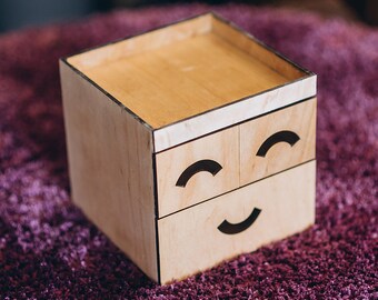 Smile Emoji Face box Desk organizer Personalized Birthday gift Memory box Table decor Wedding box Laser cut wood Wooden toys Gift for Him