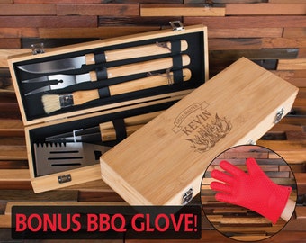 7 Piece BBQ Grill Tool Set, BBQ Set, Grilling Tools, Personalized Barbecue Set, Engraved Grillware, Grill Master Gift, BBQ Gift for Men