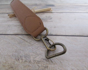 Short leather handle, bag handle, musket, bronze metal ring - 29 cm, black, dark brown, light brown - 92